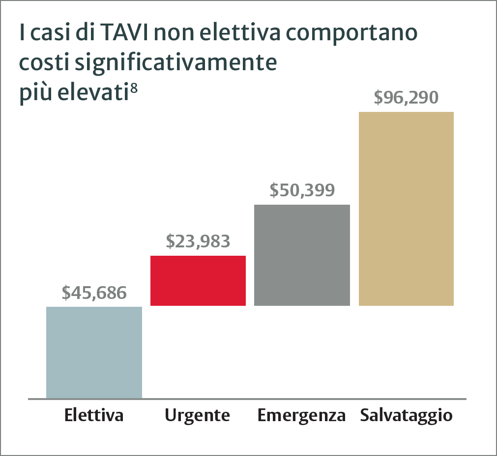 Ritardare il trattamento con TAVI potrebbe aumentare i costi della terapia e aggiungere spese non necessarie al sistema sanitario*8,9