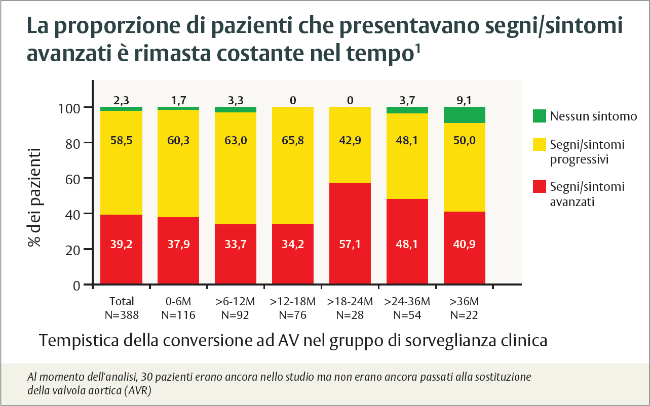 dei pazienti ha ricevuto una sostituzione della valvola aortica (AVR) entro 6 mesi, alcuni entro pochi giorni dalla valutazione come asintomatici1,5
