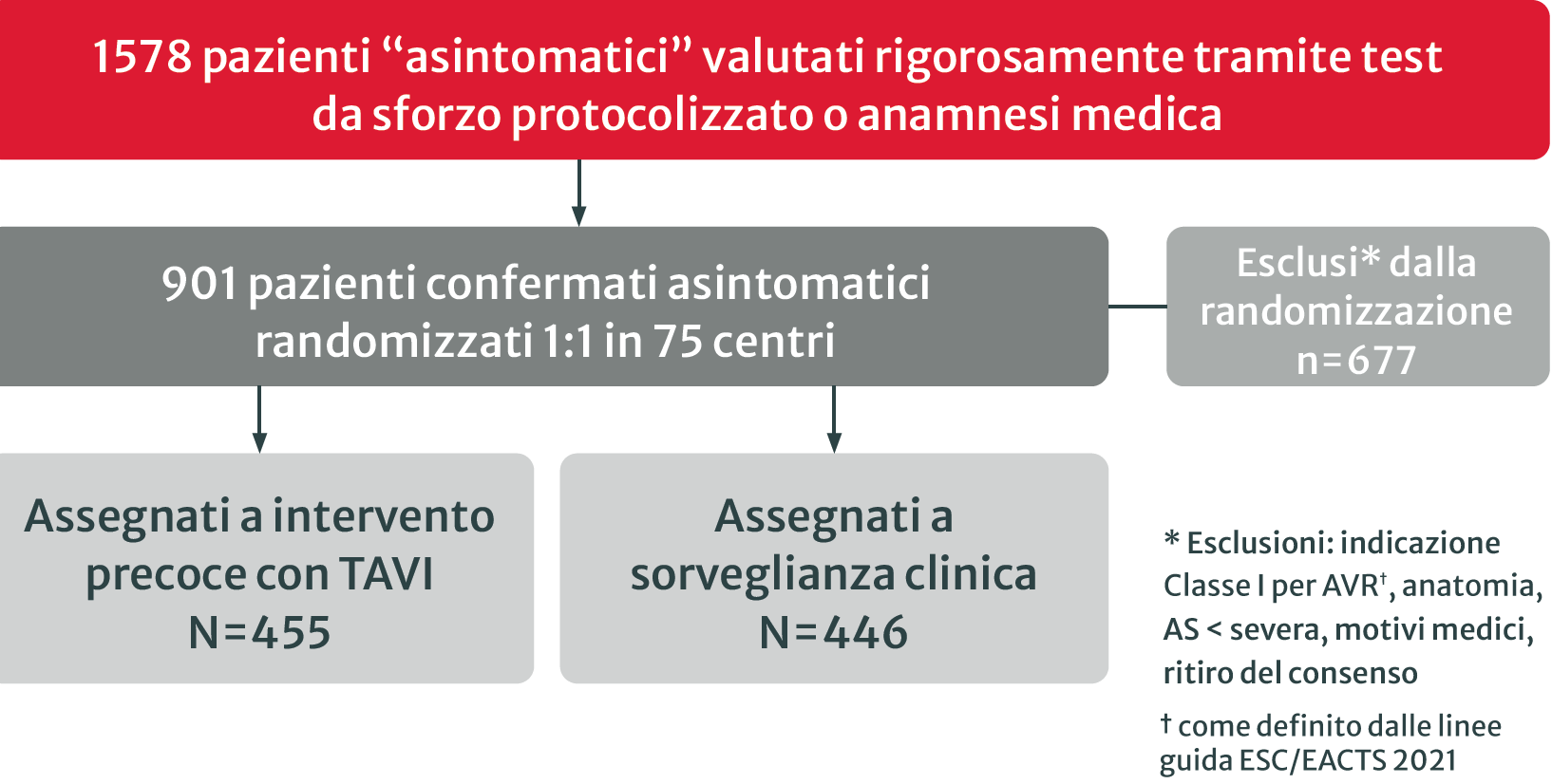 Il primo studio clinico randomizzato (RCT) disegnato per dimostrare che la strategia migliore per trattare la stenosi aortica (SA) severa asintomatica è la TAVI rispetto alla sorveglianza clinica.1,3